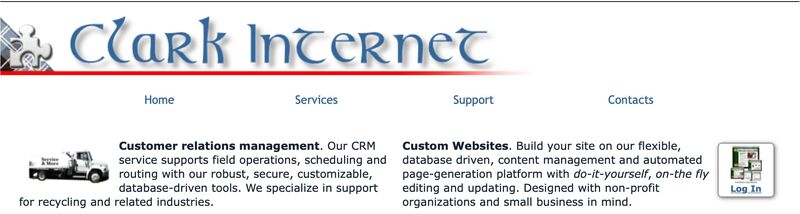 Clark Internet Our web host; they build web applications for the recycling and training industries. Features include customer relations management, scheduling, routing, reporting and more with intuitive user interface.